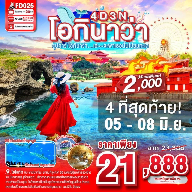 - ราคาเริ่มต้น: 27,888 บาท (สำหรับวันที่ 03 - 07 ก.ค. 2568) และ 28,888 บาท (สำหรับวันที่ 09 - 13 ก.ค. 2568) (ราคารวมภาษีมูลค่าเพิ่ม 7%)