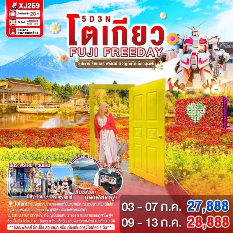 วันอิสระ: มีวันอิสระเต็มวัน (1 วัน) สำหรับช้อปปิ้ง เที่ยวสวนสนุก หรือเที่ยวในกรุงโตเกียวตามอัธยาศัย.บริการบนเครื่อง: มีบริการอาหารบนเครื่อง